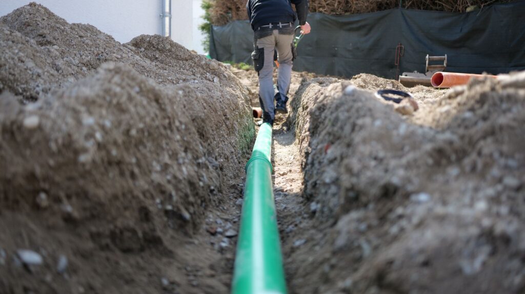 Präzise und sichere Erdarbeiten für Wasser-, Strom-, Gas- und Abwasserleitungen.